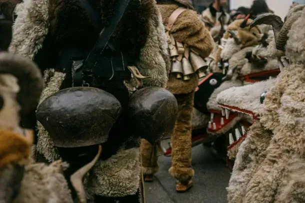 Every year, between January and mid-March, in different towns and villages across Bulgaria the unusual tradition of Kukeri takes place. Men and boys dress up like monsters and make as much noise as they can with the heavy bells hung on their belts, believing they chase the evil spirits away.