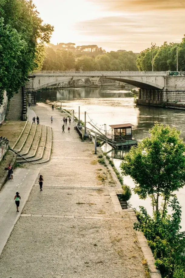 Cutting through the centre of Rome is the Tevere, or Tiber river. Historically, the river would regularly flood which eventually led to the construction of embankments to protect the city. Known as the lungotevere, the high stone walls also shield the river from the chaos of the city, making it a scenic spot to take a leisurely walk or even work out.
