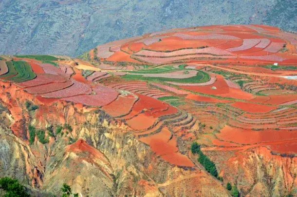 It’s easy to think that pictures of Lexiaguo, near Yunnan’s provincial capital of Kunming, are Photoshopped, but the colorful, terraced land does, indeed, look like that. Lexiaguo’s mismatched appearance is due to a lack of governmental oversight in the area, leading to self-employed local farmers planting a wide variety of crops in their own preferred style on the extremely oxidized earth. Lexiaguo is best viewed in November when the contrasting colors are at their peak.