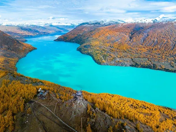 China’s westernmost province, Xinjiang, is chock-full of natural beauty, but its many spectacular lakes take the cake. The crescent moon-shaped Kanas Lake, which lies in the Altai Mountains, is famous for its turquoise waters and mythical Kanas Lake Monster. Though picturesque year-round, Kanas Lake really shines in the autumn, as the surrounding trees burst into colors as vibrant as the milky blue of the lake itself.