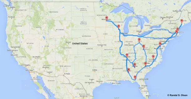 A few years back a savvy University of Michigan researcher figured out the fastest route to drive across the US, hitting all the country’s major landmarks before coming full circle.